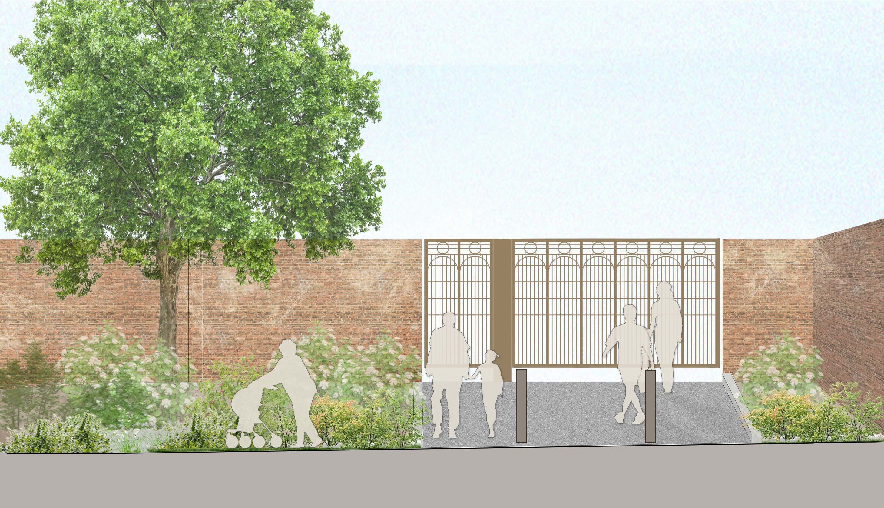 The existing narrow Penge Gate entrance will be refurbished to create a wider, more prominent gateway into the park, extending the geometric line of the Grand Centre Walk and preserving the strong symmetry of the original park design. This upgrade will provide a more welcoming, pedestrian-focused route into the park. The gate’s metalwork draws inspiration from the historic Crystal Palace’s architectural features, celebrating the park’s heritage. New entrance signage will enhance legibility and improve wayfinding for visitors.
